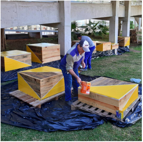 Alunos da Faculdade de Arquitetura e Urbanismo da Doctum Juiz de Fora produziram um mobiliário lúdico, feito a partir de materiais de reaproveitamento das obras realizadas na unidade, que foi destinado para uma escola pública local, com a finalidade de promover a integração social de alunos, professores e funcionários.