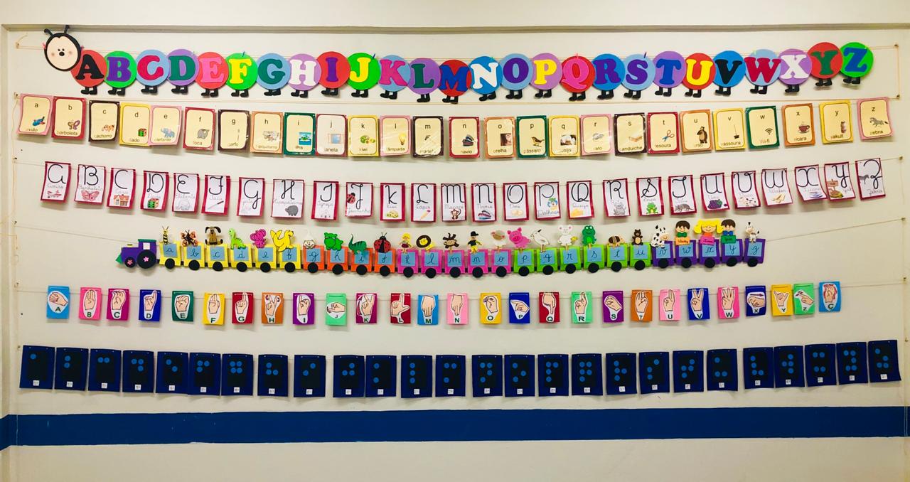 As turmas foram organizadas em grupos de trabalhos e cada grupo foi responsável pelo processo de pesquisa, abordando subtemas como: letra bastão; letra de imprensa; letra maiúscula cursiva; letra minúscula cursiva; alfabeto datilológico ou manual (conhecido popularmente como alfabeto em Libras) e alfabeto no Sistema Braille. Em seguida, os grupos apresentaram os resultados de suas pesquisas e o recurso didático confeccionado.