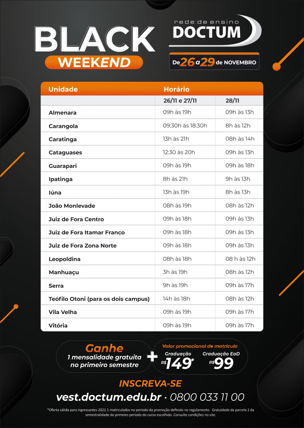Horário de funcionamento unidades – Black Weekend