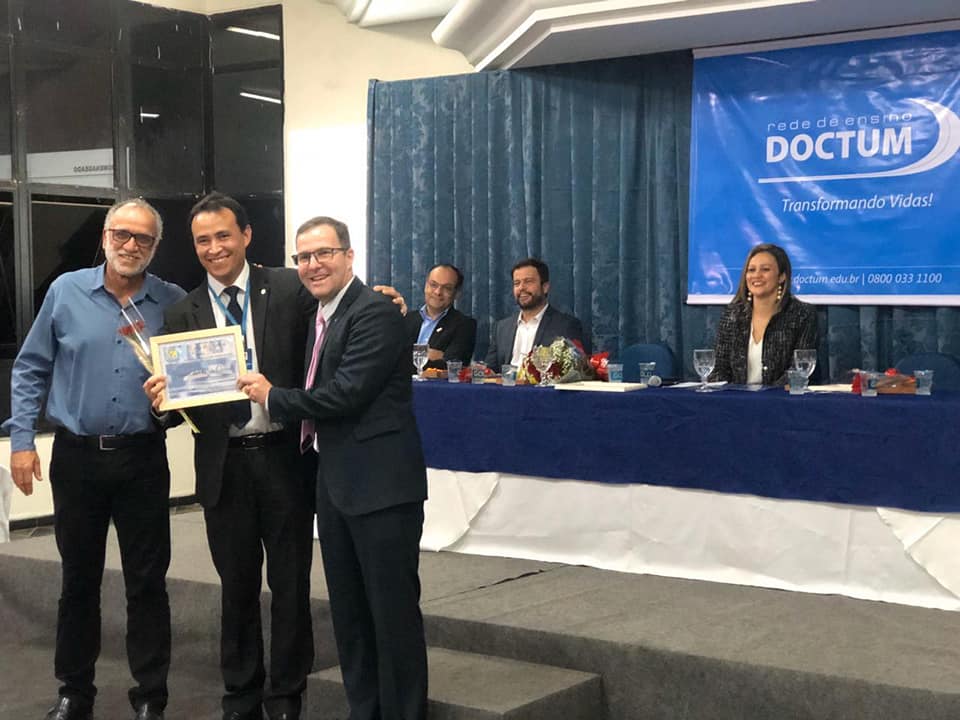 O vereador entregou homenagem a diversos colaboradores da instituição, em reconhecimento ao trabalho que desenvolvem há mais de uma década em prol da educação. O presidente da Rede de Ensino Doctum, professor Cláudio Leitão, representou o presidente executivo, Pedro Leitão, na outorga da Comenda Acle Zouain. A comanda é concedida a pessoas que se destacam em suas áreas de atuação.